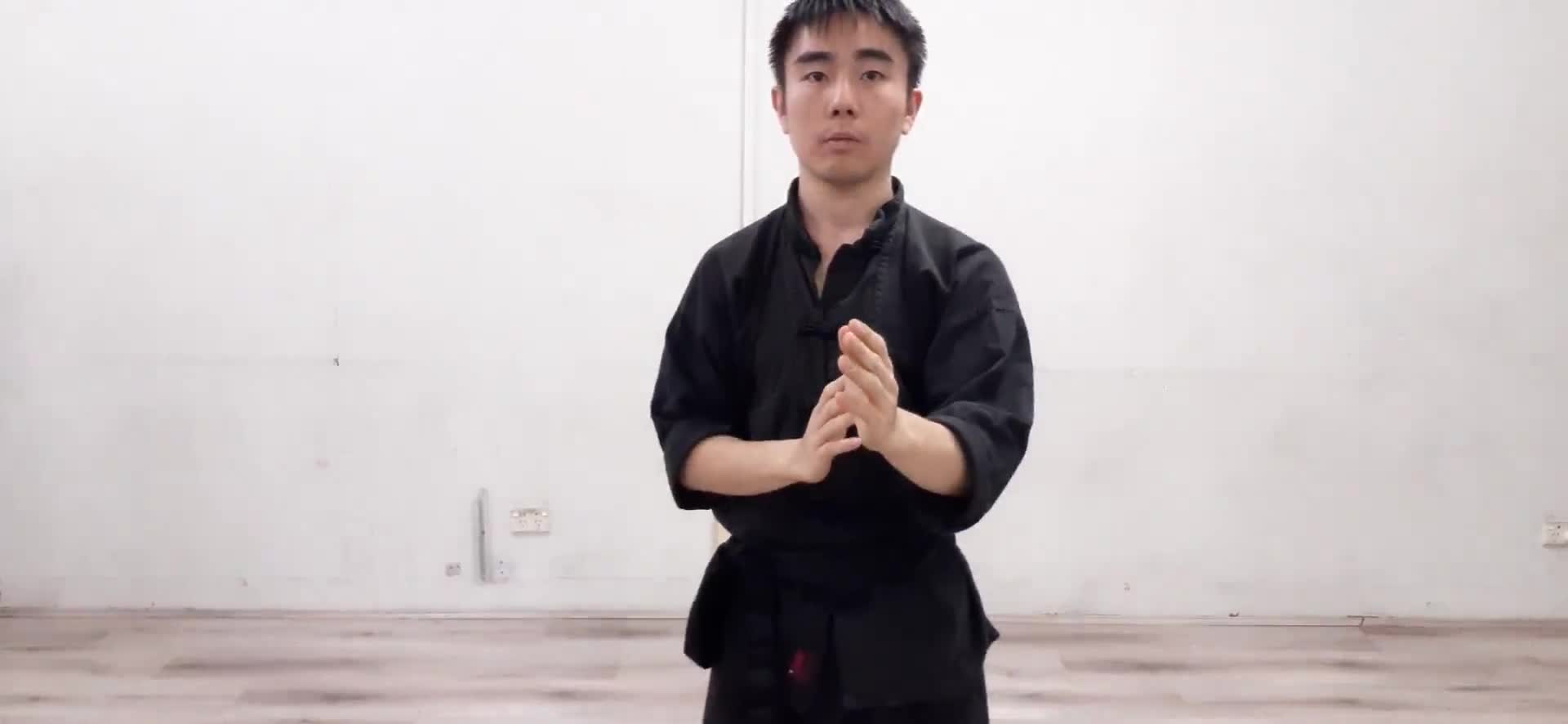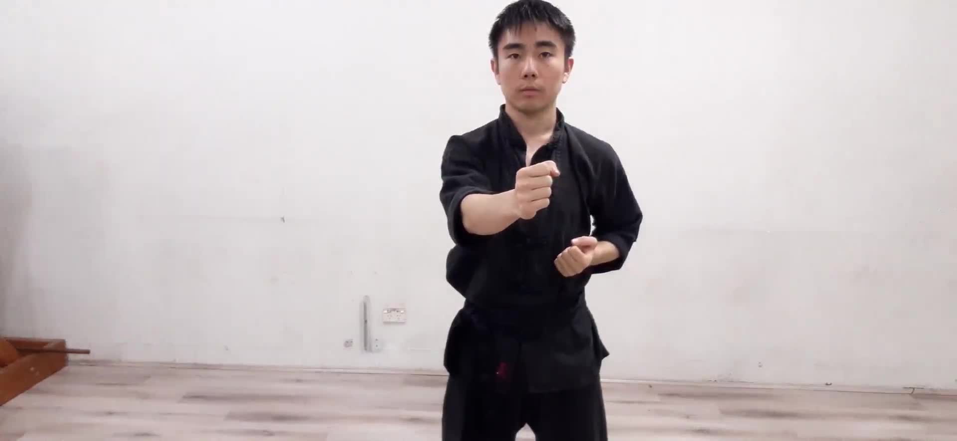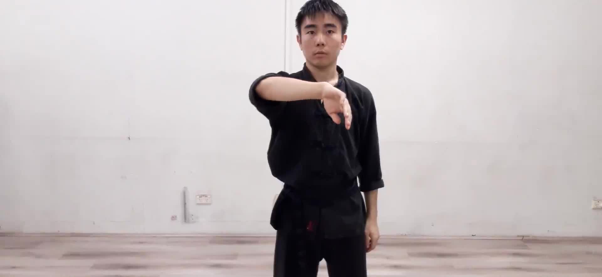 The standard guard for Wing Chun Kung Fu. One hand behind the other, fingers together and pointing to the centreline. The guard is made to keep the centreline protected.